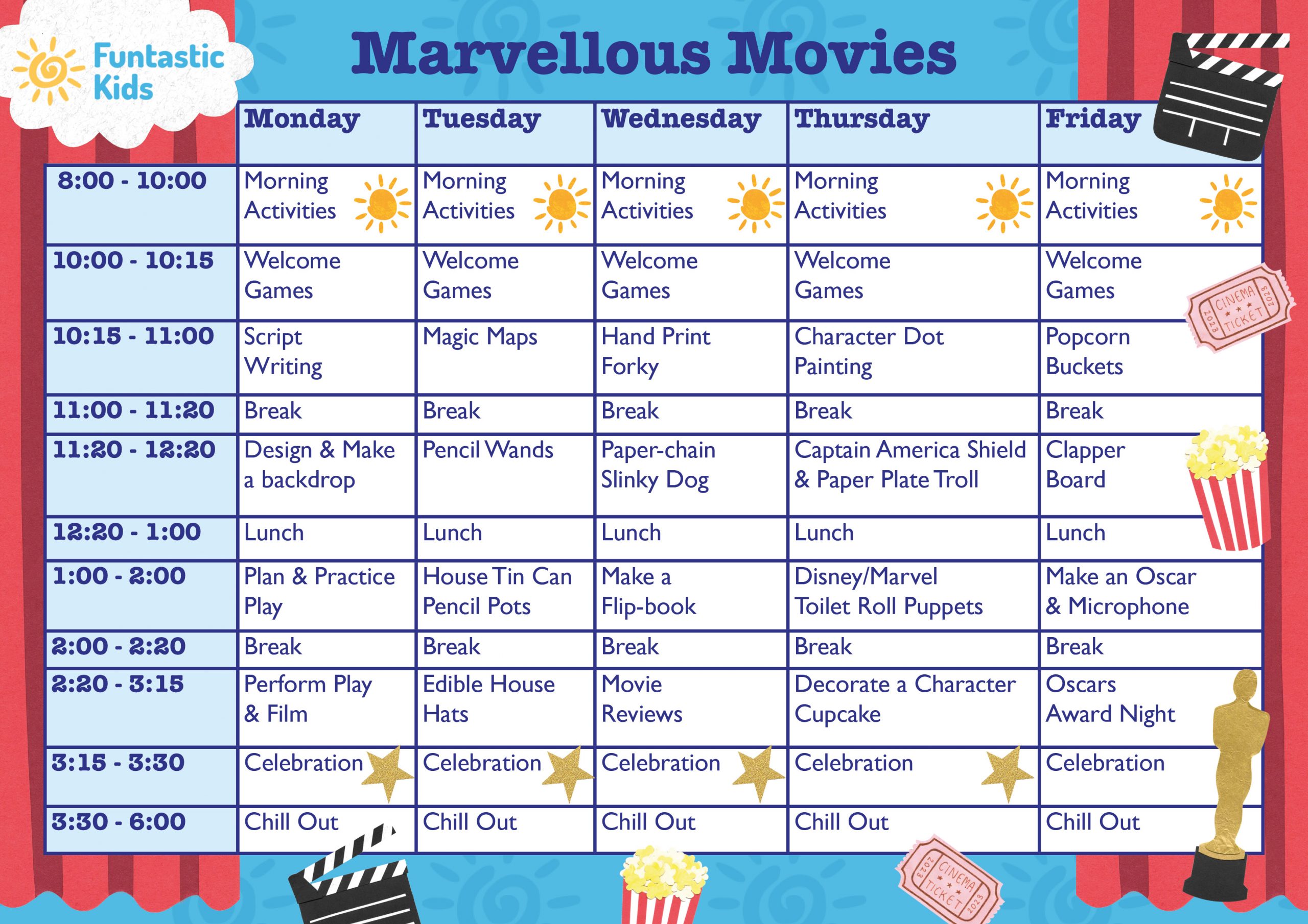 All of our Holiday Camps provide fun-packed creative-themed timetables (activities including drama, art, games, science and more) as well as energetic and varied sports timetables. Children can choose their preferred activity each session, making every day at Funtastic Kids unique. There is no need to choose in advance, children can pick what they would like to do on the day!