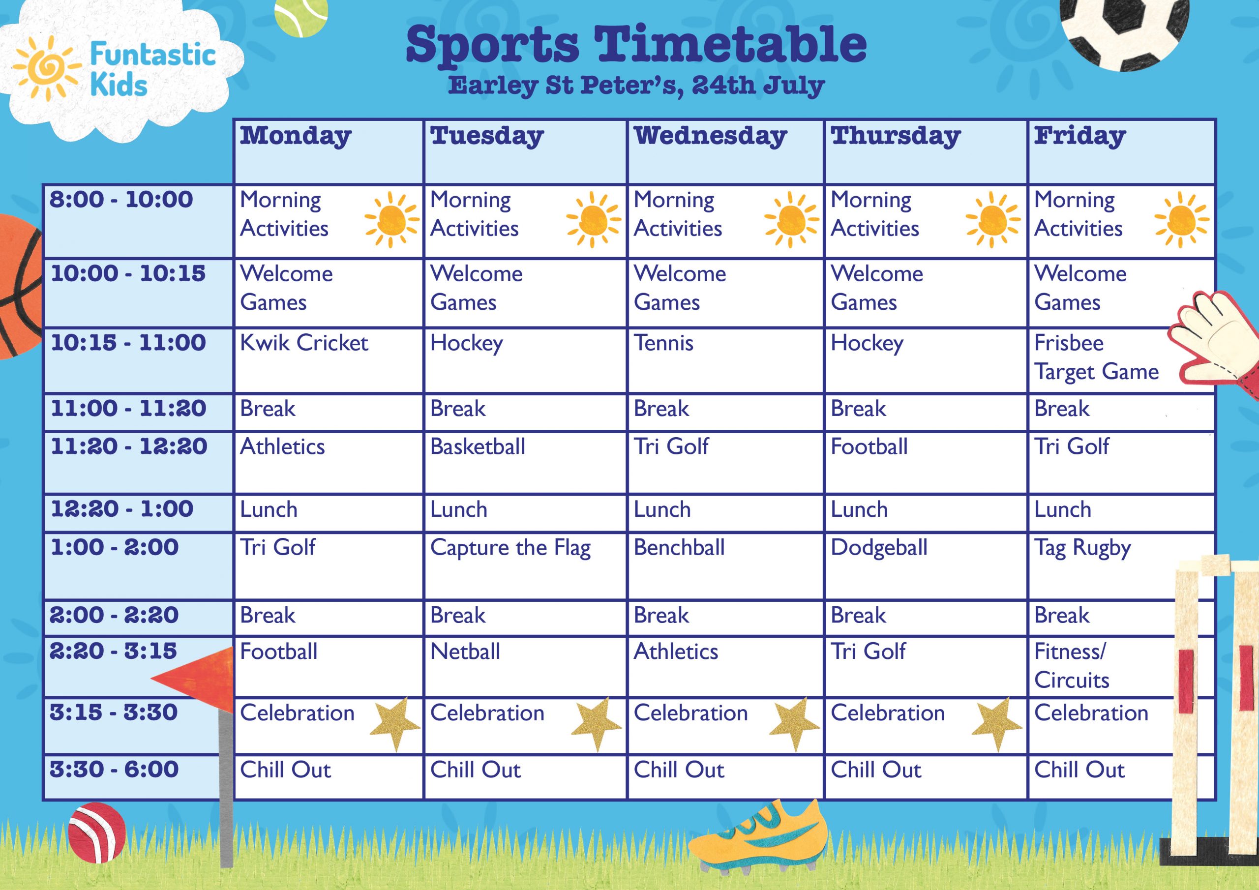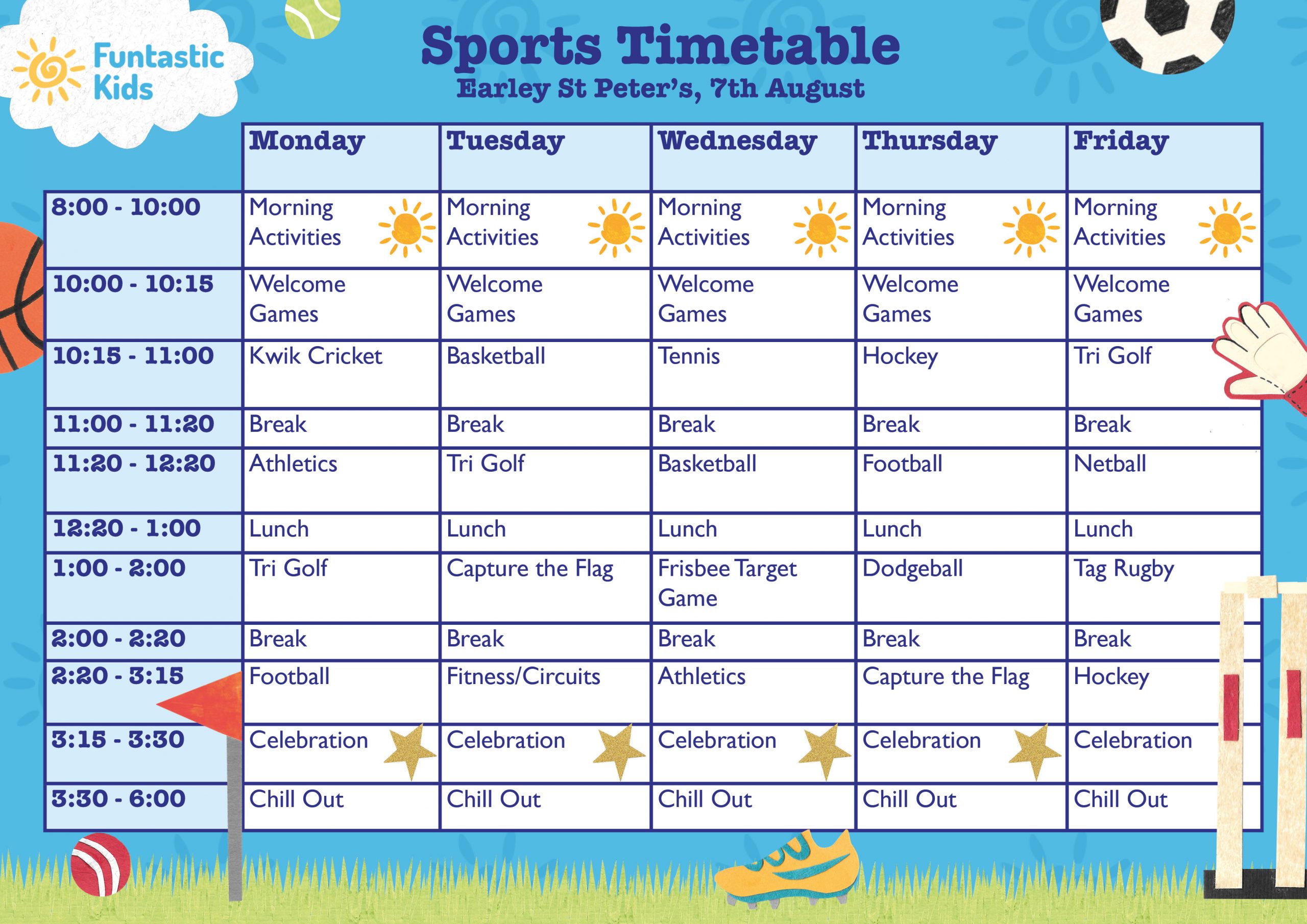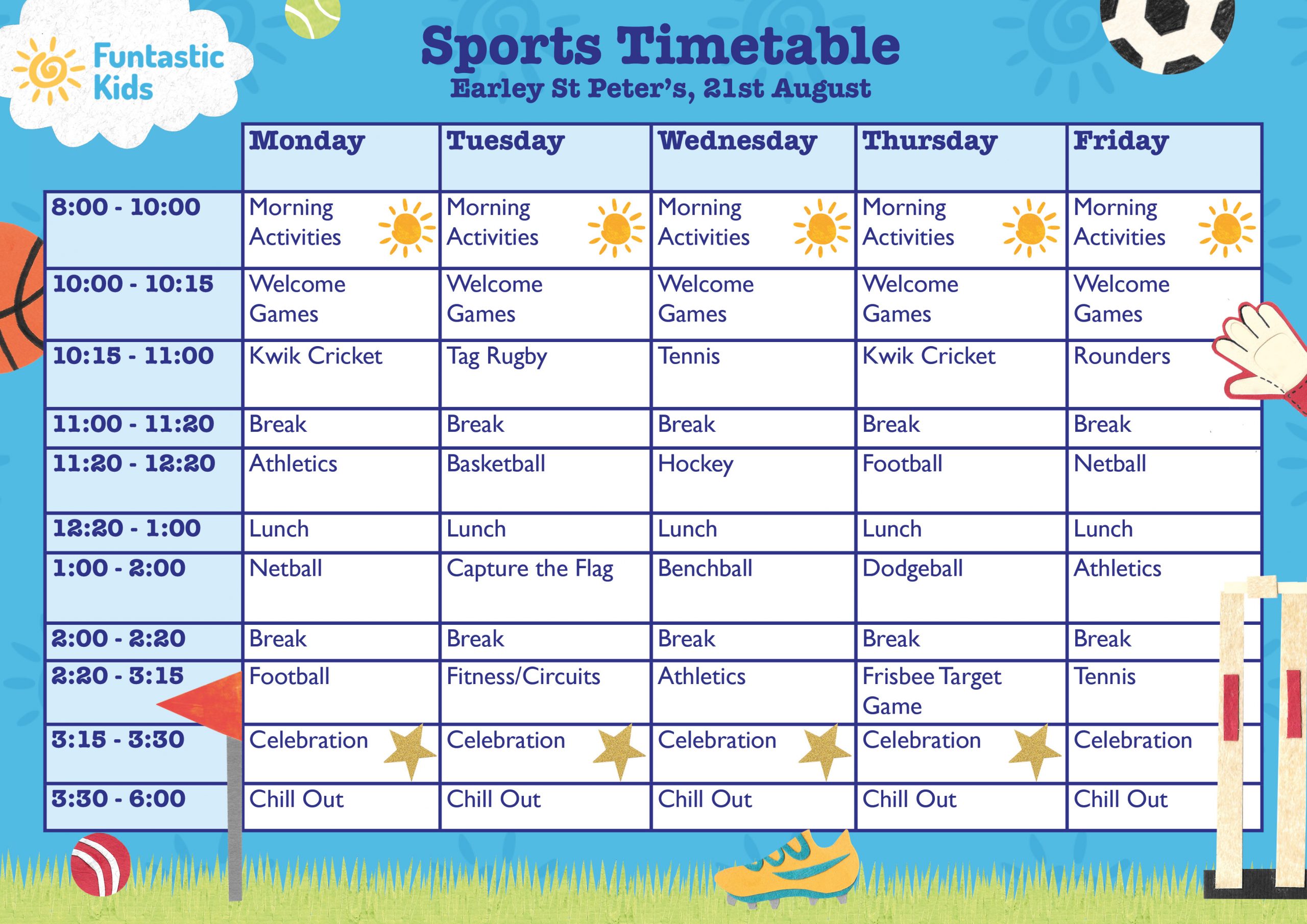 If our Earley St Peter’s Holiday Camp is fully booked for the dates you require, please email booking@funtastic.testing-noon.studio to be added to our waiting list or consider trying one of our other camp locations.