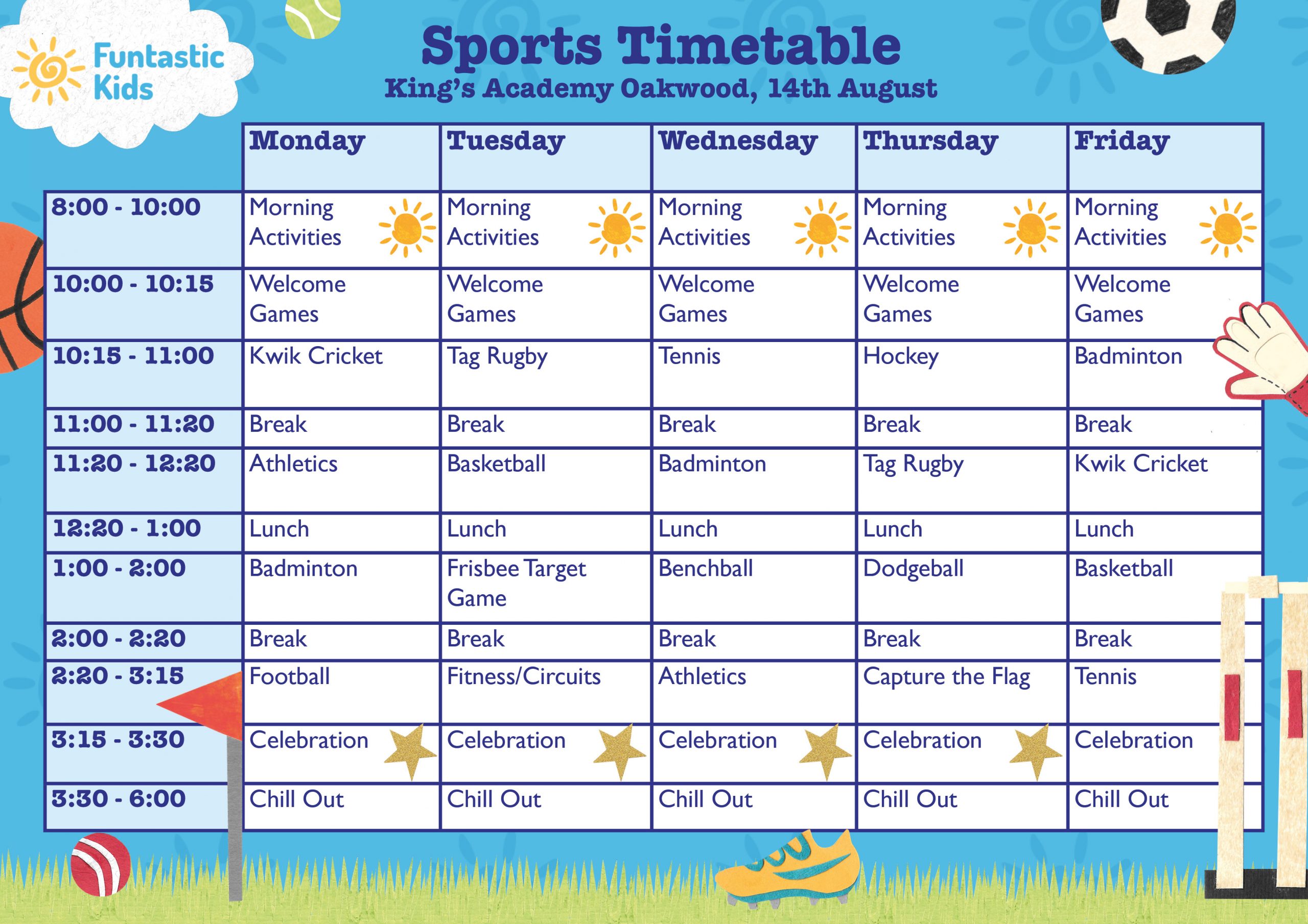 If our King’s Academy Oakwood Holiday Camp is fully booked for the dates you require, please email booking@funtastic.testing-noon.studio to be added to our waiting list or consider trying one of our other camp locations.
